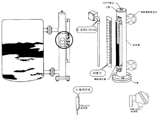 七、液位計(jì)運(yùn)用時(shí)特別要留意,千萬不要用強(qiáng)磁鐵在連通管外上下拉動(dòng)浮子停止檢查,否則會(huì)招致磁性浮子磁化而改動(dòng)極性,以至?xí)垢∽哟判韵魅?,致使難以正常工作。