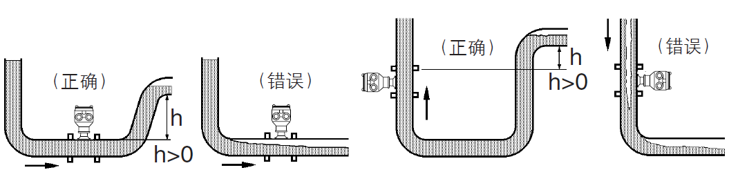 5、液體容器上方氣相引出口的位置。應(yīng)選擇在避免容器內(nèi)液體流動和流體沖擊引起影響的地方。導壓管從容器中引出后,應(yīng)即垂直向上敷設(shè)一定高度(一般大于150mm),然后再向水平方向敷設(shè)。