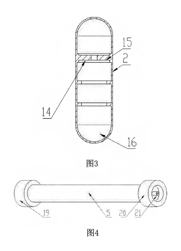 磁浮球呈膠囊狀且內(nèi)部設(shè)有空腔,磁浮球一端開口,磁浮球的空腔內(nèi)安裝有兩個(gè)加強(qiáng)支撐環(huán),兩加強(qiáng)支撐環(huán)之間安裝有環(huán)形**強(qiáng)磁鋼塊,磁浮球開口端焊接有封堵頭,磁浮球質(zhì)量較輕,可以在液位計(jì)主體的磁浮球通道中浮起,兩個(gè)加強(qiáng)支撐環(huán)一方面可以保證磁浮球不會(huì)在受到較大壓力時(shí)發(fā)生形變,另方面可以固定環(huán)形**強(qiáng)磁鋼塊,環(huán)形**強(qiáng)磁鋼塊增大了磁浮球與磁翻板的磁耦合強(qiáng)度,使環(huán)形**強(qiáng)磁鋼塊在磁浮球內(nèi)更加穩(wěn)定,焊接的封堵頭有效保證磁浮球內(nèi)部不會(huì)進(jìn)入液體,增長(zhǎng)了使用壽命。