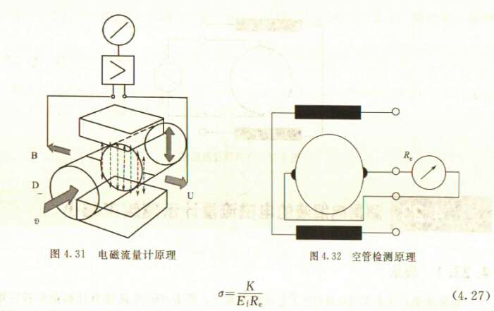 電磁流量計(jì)是速度式流量計(jì)中的一種。它給出的信號(hào)其實(shí)是流過(guò)測(cè)量管的液體平均流速,在測(cè)量管內(nèi)液體充滿的情況下,式(4.28)成立: