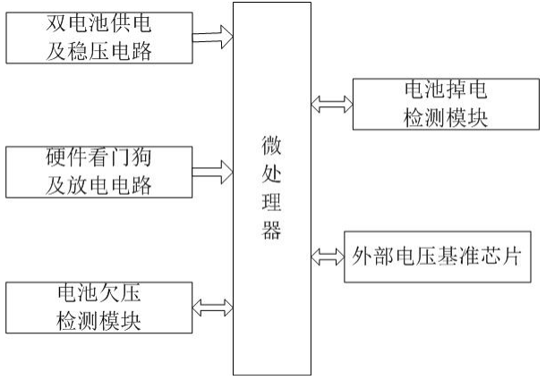 簡(jiǎn)介:本實(shí)用新型公開了一種用于超聲波水表的電源及容量檢測(cè)模塊,包括微處理器、雙電池供電及穩(wěn)壓電路、硬件看門狗及放電電路、電池欠壓檢測(cè)電路、 電池掉電檢測(cè)電路、外部電壓基準(zhǔn)芯片;雙電池供電及穩(wěn)壓電路與微處理器的電源端口連接,為其供電;硬件看門狗及放電電路的一端與雙電池供電及穩(wěn)壓電路連 接,其另一端與微處理器的復(fù)位端口連接;電池欠壓檢測(cè)模塊與微處理器連接;電池掉電檢測(cè)模塊與微處理器連接;外部電壓基準(zhǔn)芯片與微處理器電壓參考端口連 接。本實(shí)用新型采用雙電池供電方式來(lái)增大電池容量,并通過單通道線性穩(wěn)壓器輸出穩(wěn)定的3V工作電壓。本實(shí)用新型即能保證計(jì)量誤差的精確性、又能滿足電池長(zhǎng) 期驅(qū)動(dòng)以及系統(tǒng)長(zhǎng)期穩(wěn)定運(yùn)行。