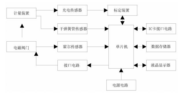 簡(jiǎn)介:本實(shí)用新型公開了一種高精度IC卡水表,包括計(jì)量裝置、光電傳感器、標(biāo)定裝置、干彈簧管傳感器、單片機(jī)、IC卡接口電路、數(shù)據(jù)存儲(chǔ)器、液晶顯 示器、電源電路、接口電路、電磁閥門和霍爾傳感器,單片機(jī)通過干彈簧管傳感器采集計(jì)量裝置的信息,單片機(jī)通過霍爾傳感器采集電磁閥門的信息,標(biāo)定裝置、 IC卡接口電路、數(shù)據(jù)存儲(chǔ)器、液晶顯示器分別與單片機(jī)的對(duì)應(yīng)引腳連接,計(jì)量裝置的信號(hào)輸出端分別與光電傳感器的信號(hào)輸入端和干彈簧管傳感器的信號(hào)輸入端連 接,光電傳感器的信號(hào)輸出端與標(biāo)定裝置的光電信號(hào)輸入端連接,電源電路為該水表提供電源。本實(shí)用新型中標(biāo)定裝置能提高水表計(jì)量精度,光電傳感器用于標(biāo)定時(shí) 精確地測(cè)量水表的轉(zhuǎn)速。本文來(lái)源:中國(guó)儀表網(wǎng),由潤(rùn)中儀表科技有限公司收集整理發(fā)布。